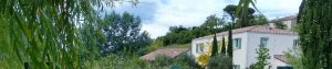 Exclusive use of a cosy, self contained one bedroom lodge, next to but separate from the main villa, with shared access to the pool, grounds and parking area on the site by the main property. The studio lodge has its own fully equipped kitchen area (worktop, cupboards, hob, extractor, microwave, fridge, dining table and chairs), adjacent to a well proportioned living area and a separate bathroom with shower, washbasin, toilet. Upstairs there is a spacious bedroom with king bed, dressing/desk area, wardrobe and lots of space under the eves for storage or even extra child beds. The lodge has its own washing machine for your comfort and convenience. Outside, the lodge has its own covered patio with view over the shared garden and the pool area, while maintaining a good level of privacy from the main villa on the site.